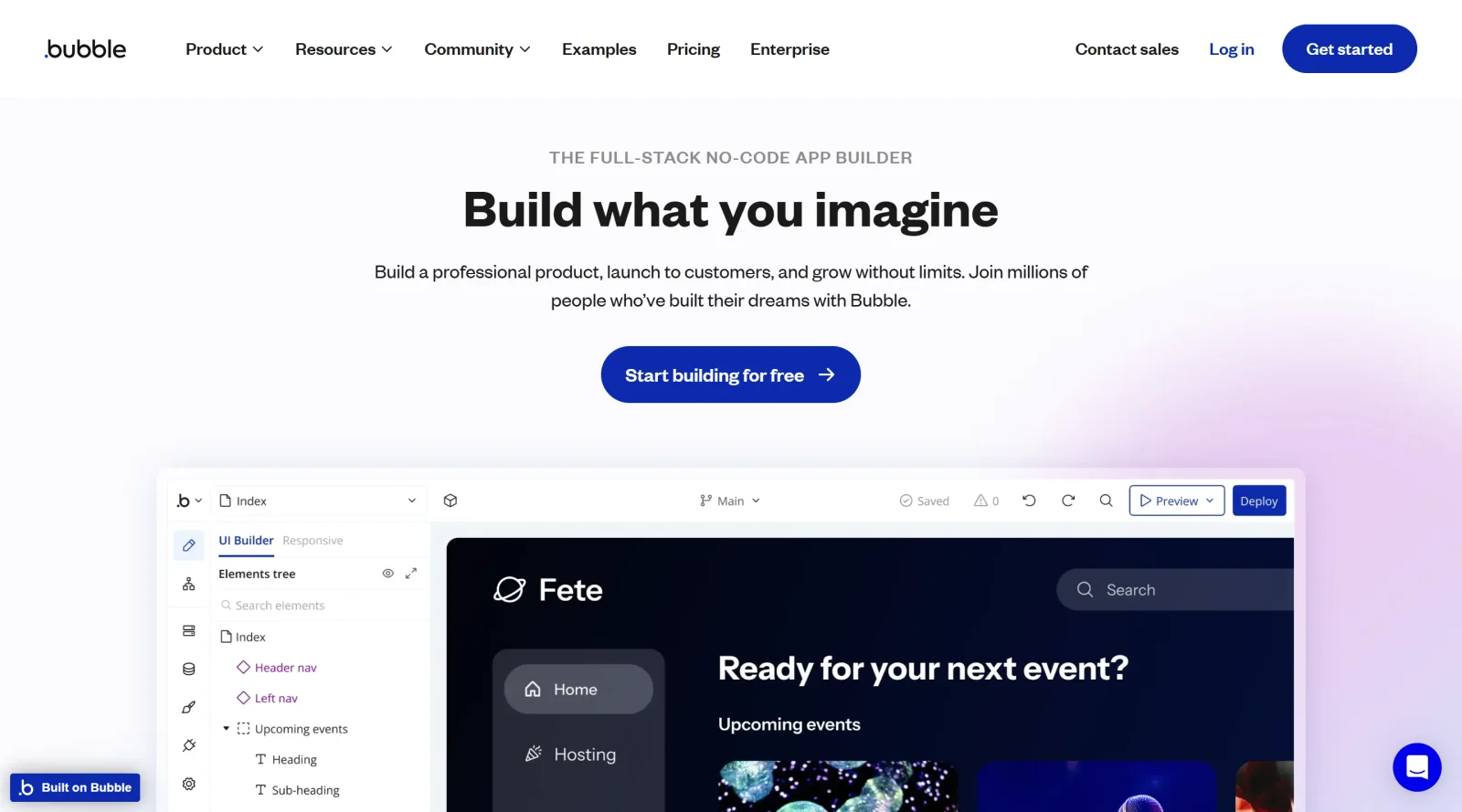 Bubble is a no-code visual development platform in the **design** category that enables users to build complete web and mobile applications without writing code. Its core purpose centers on providing a visual editor, integrated database, and workflow system to transform ideas into functional apps. Bubble operates on a freemium pricing model, offering free access to key features for prototyping while paid plans unlock advanced capabilities like custom domains and higher usage limits.