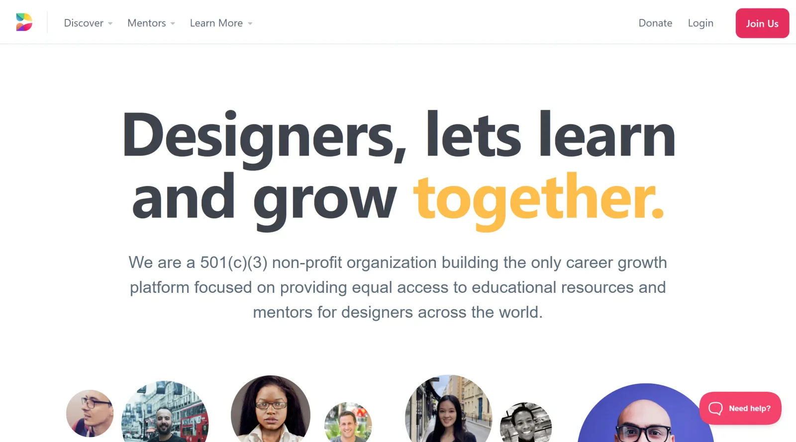 Designed is a free platform in the **design** category that operates as a 501(c)(3) non-profit organization. It serves as a career growth hub for designers, providing access to educational resources, mentoring, and community features to support professional development worldwide.