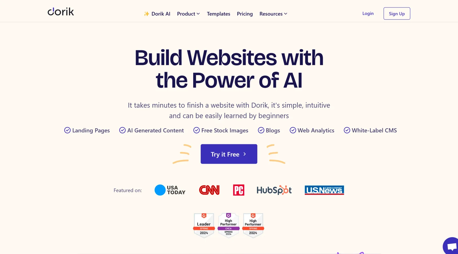 Dorik is a no-code website builder in the **design** category that enables users to create responsive websites without coding skills. It functions as an AI-powered platform with drag-and-drop editing, pre-designed templates, and UI blocks, fitting into design workflows for rapid prototyping and site deployment. Dorik operates on a paid pricing model, providing tools like white-label CMS and integrations for ongoing site management.