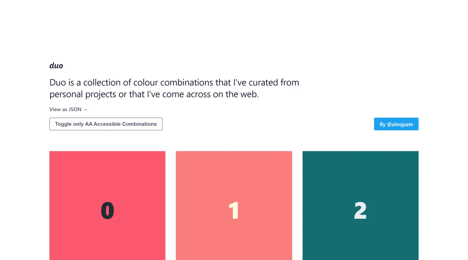Duo is a free collection of color combinations curated for use in design projects. It falls within the design category, offering designers access to pre-selected color palettes sourced from personal projects and web discoveries. Duo serves as a resource in the early stages of the design workflow, where establishing visual harmony through color selection is essential.