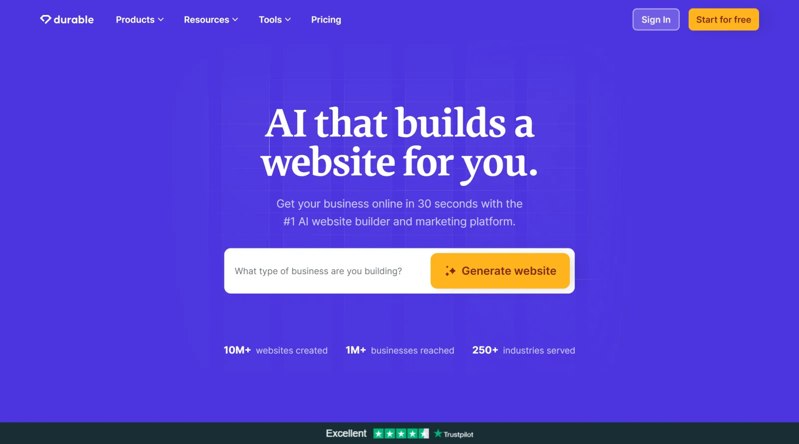 Durable serves entrepreneurs, freelancers, and small business owners who prioritize speed and simplicity over extensive customization. It is particularly suited for users without technical or design experience who need functional websites and basic business management tools. The platform also appeals to teams seeking rapid prototyping capabilities and companies looking to reduce production time while maintaining consistency. However, businesses requiring advanced design flexibility, complex feature sets, or extensive scalability may find Durable's customization options limiting. Visit Durable