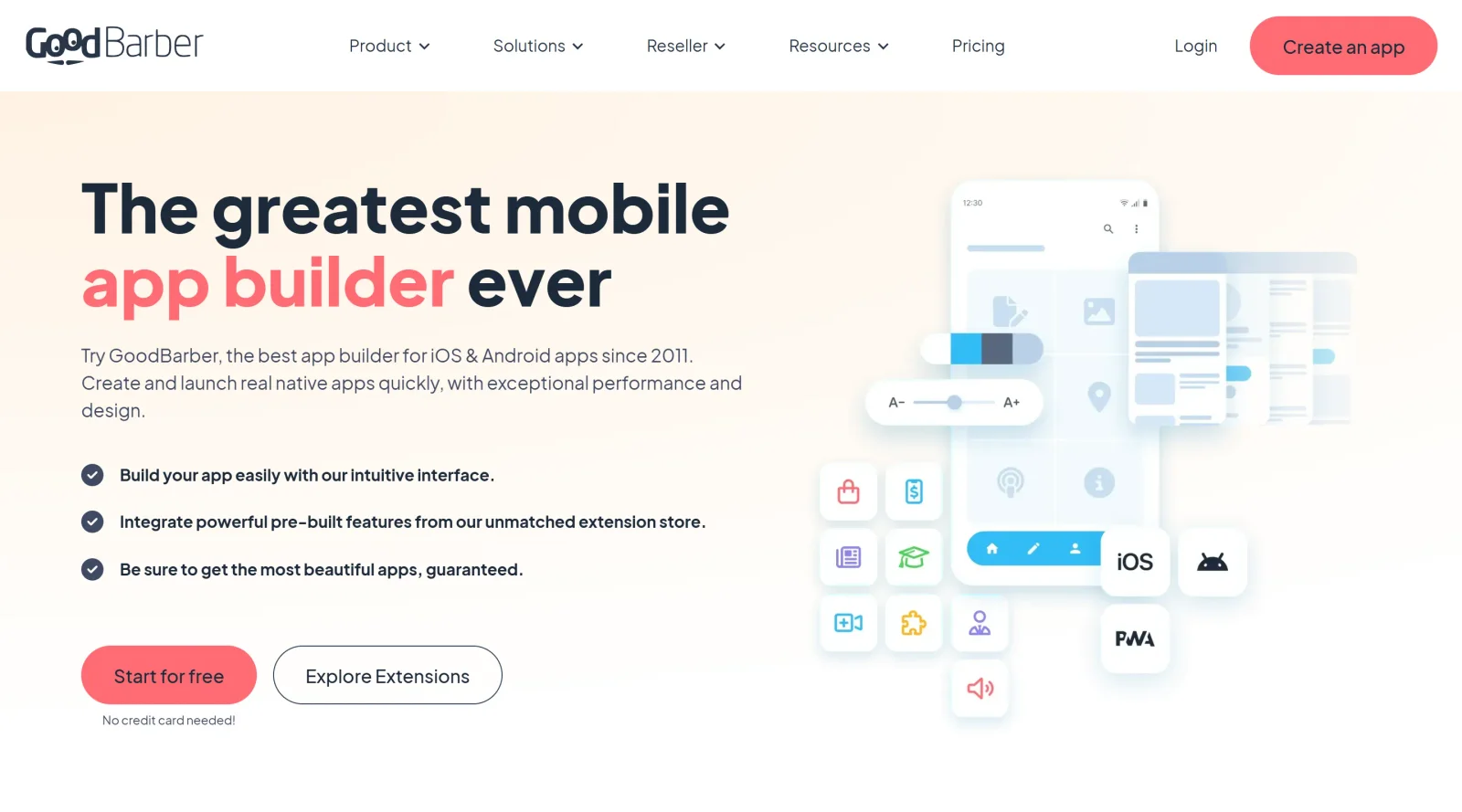 GoodBarber is a no-code app builder that enables users to create native iOS and Android applications, as well as progressive web apps, without requiring coding knowledge. As a paid website builder and app development platform, GoodBarber provides an intuitive interface combined with native technologies such as Swift and Kotlin to deliver apps with strong performance. The tool is designed for users who need to build content management systems, eCommerce applications, or feature-rich mobile experiences while maintaining design control and brand consistency.