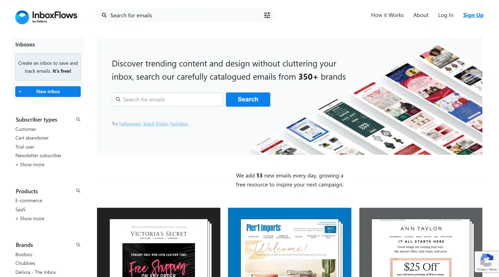 Inboxflows is a free email design inspiration platform powered by Delivra that helps designers, marketers, and entrepreneurs research and monitor email campaigns from brands across industries. Rather than subscribing to dozens of newsletters, users access a curated database of over 1,000 email design examples and trending content from more than 350 international brands in one centralized location. The tool combines email design inspiration with competitive research capabilities, making it useful for those seeking to understand current email design patterns and trends without cluttering their own inboxes.