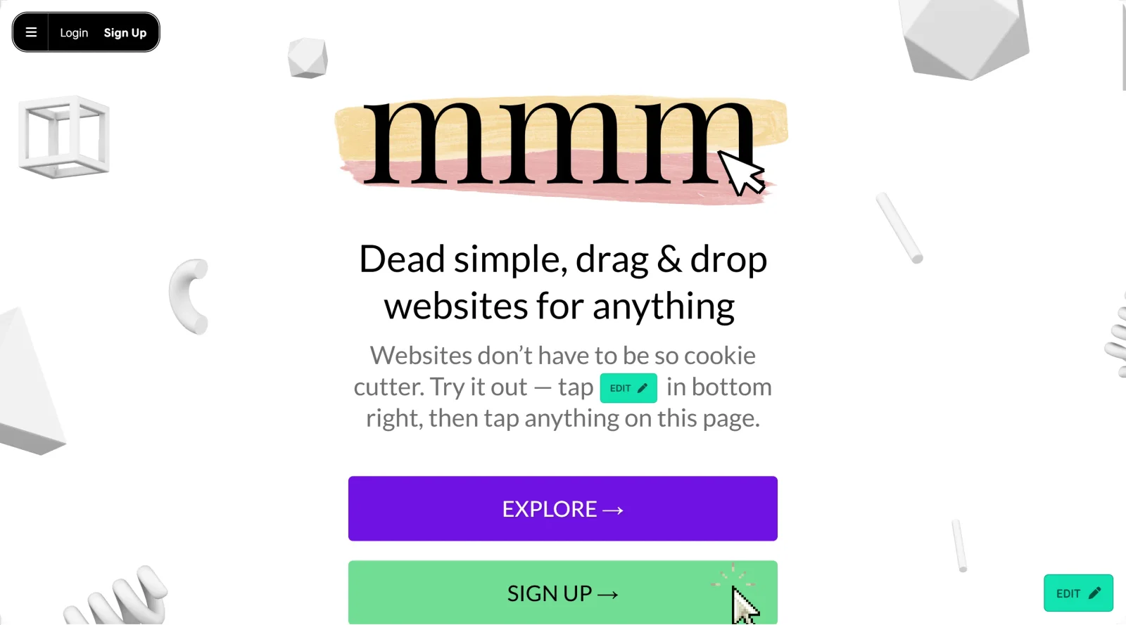 mmm is a drag-and-drop website builder designed for creating personal sites. It operates as a freemium tool in the website-builders category, offering a free plan for basic use and paid upgrades for expanded capabilities. Users assemble pages using blocks in an intuitive interface that requires no coding knowledge, making it suitable for quick site assembly within personal design workflows.