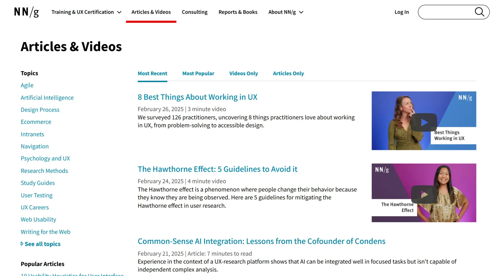 Nielsen Norman Group serves UX professionals, interaction designers, product managers, and researchers who require accessible, research-backed resources on user-centered design practices. It supports roles involved in UX planning, usability testing, and interface evaluation, as well as teams working on digital products, web usability, and service design across various experience levels. Developers and consultants use its content to integrate UX principles into development processes. Those exploring AI applications in design or psychological aspects of user behavior find targeted articles relevant to their projects. Visit Nielsen Norman Group