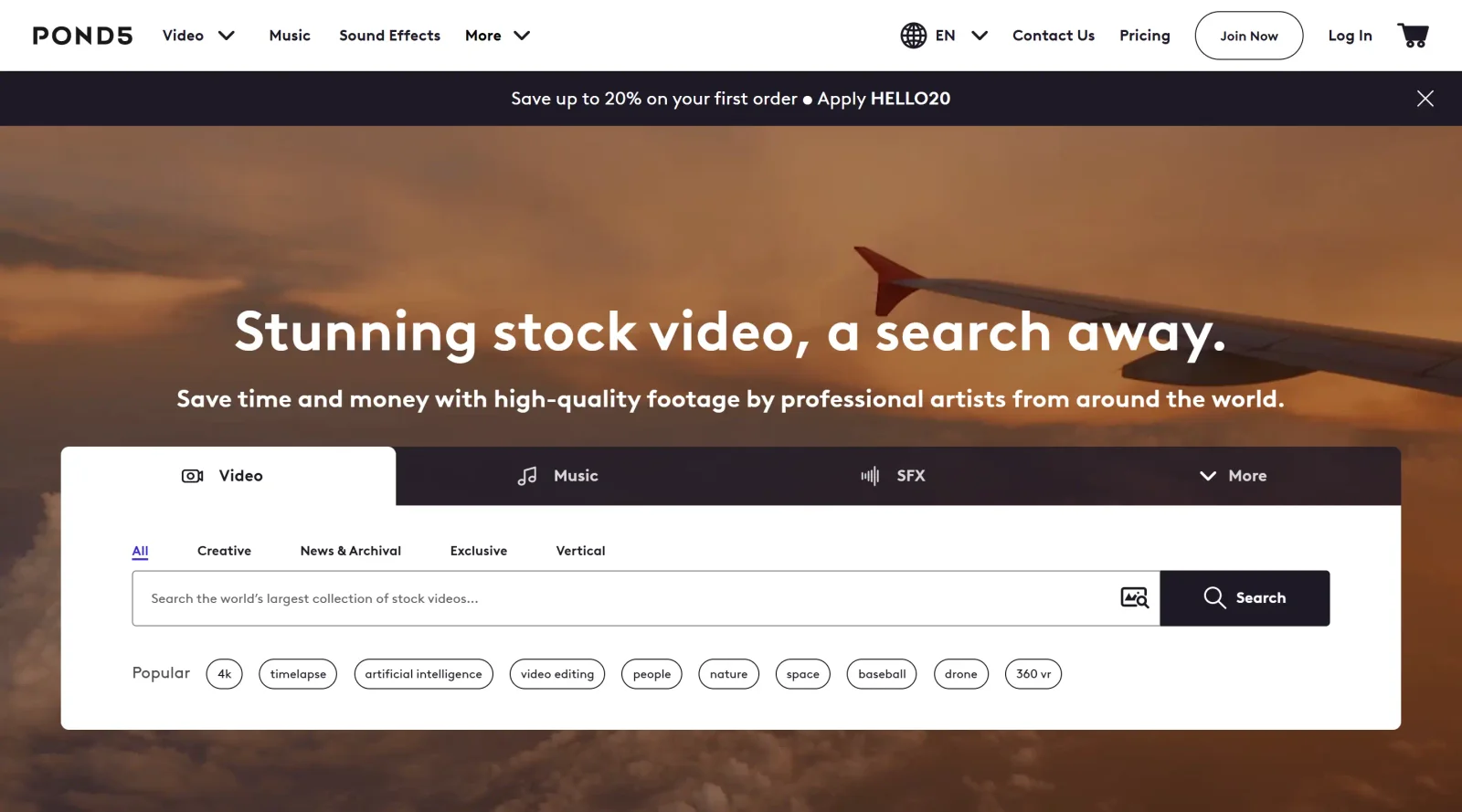 Pond5 is a paid stock photos and videos platform that provides access to an extensive collection of royalty-free stock video, music, graphics, images, sound effects, and templates. It operates as a marketplace where independent contributors upload content, allowing users to license media for personal and commercial projects. Pond5 fits into the design workflow during the asset sourcing phase, where designers and video creators search for high-quality footage, audio tracks, and visual elements to incorporate into motion graphics, advertisements, websites, and multimedia presentations.