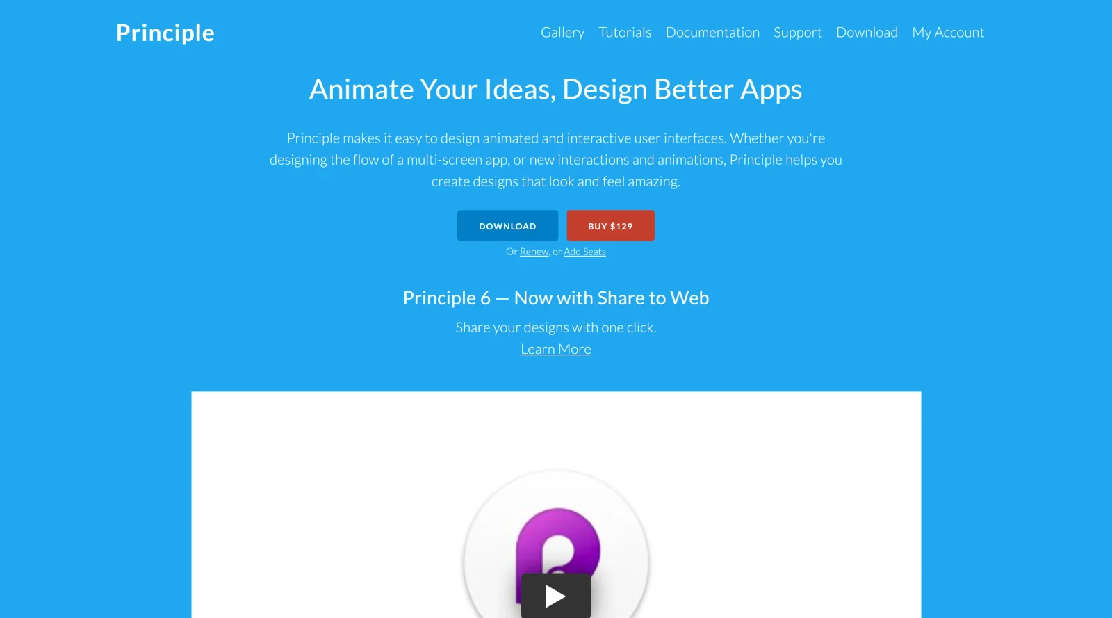 Principle is a paid UX tool designed for creating animated and interactive high-fidelity prototypes of user interfaces. It enables designers to bring static designs to life through animations, transitions, and interactions, fitting into the UX tools category after initial visual design stages like those in Sketch or Figma. Principle supports prototyping for web, mobile, and desktop platforms, with some applications in virtual reality, and accelerates the design-development cycle by allowing quick evaluation of ideas before engineering involvement.