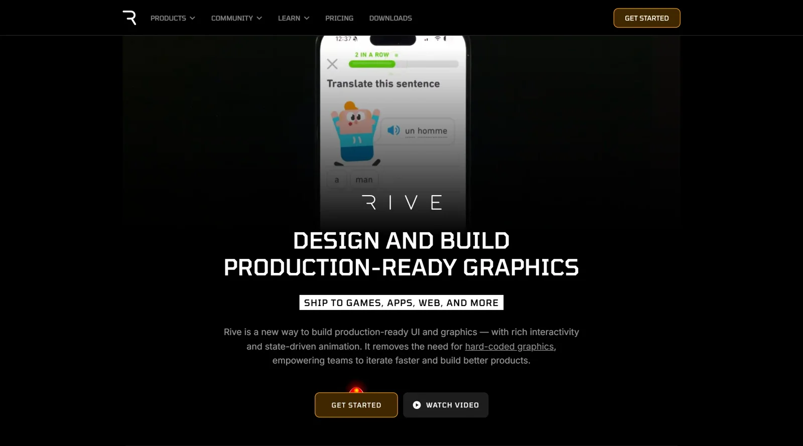 Rive is a design tool in the **design-tools** category that enables collaborative production and sharing of animations for platforms including websites, apps, and games. It operates on a freemium pricing model, allowing users to access core features at no cost while offering paid upgrades for advanced capabilities. Rive fits into design workflows by combining vector design, animation, and interactivity in a single editor, supporting transitions from static graphics to dynamic, state-driven content that integrates with development environments.