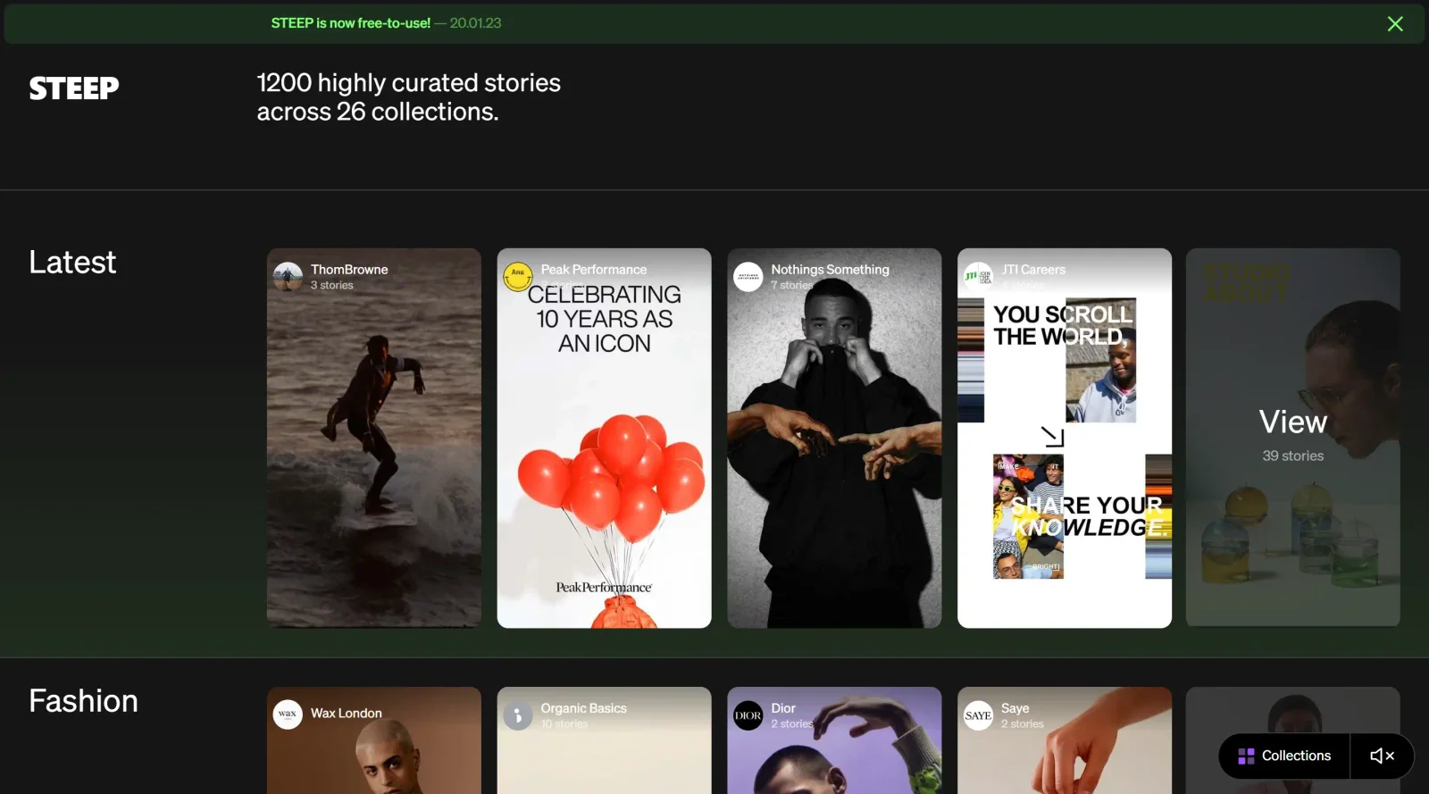 Steep serves marketing agencies, creative directors, in-house marketing departments, motion designers, and individual creatives seeking vertical format inspiration for Instagram stories. It suits professionals working on social media visuals, ad campaigns, or brand storytelling who need examples from established and emerging brands in a desktop-optimized platform. Visit Steep