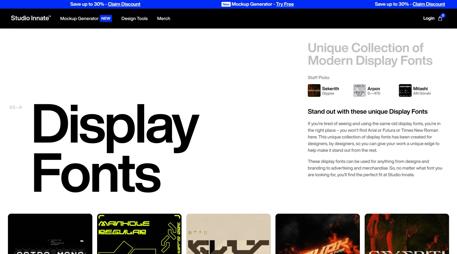 Studio Innate is a paid collection of modern display fonts in the typographycategory, offering unique typeface options for designers. It provides downloadable fonts crafted to add distinct visual appeal to projects, fitting into design workflows where custom typography enhances branding, layouts, and graphics. These fonts serve as resources alongside other Studio Innate products like mockups and vectors, accessible via their online shop.