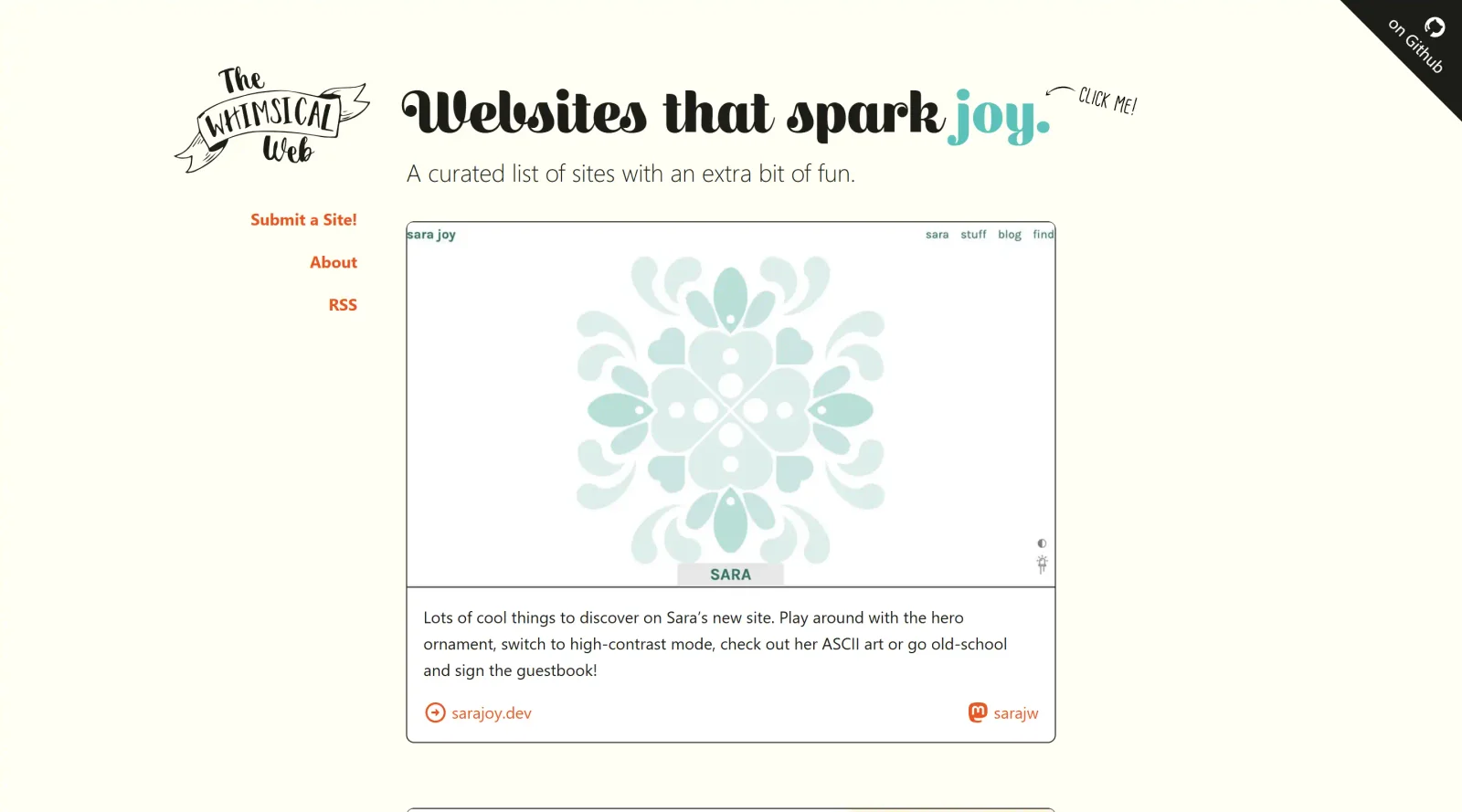 The Whimsical Web is a curated list of websites that incorporate playful and engaging elements into their design. As an inspiration resource in the design workflow, it serves designers seeking examples of sites that add an extra touch of fun through whimsical interactions, animations, or visual surprises. Available for free, The Whimsical Web fits early stages of the creative process, where gathering references helps spark ideas before moving to wireframing or prototyping tools.