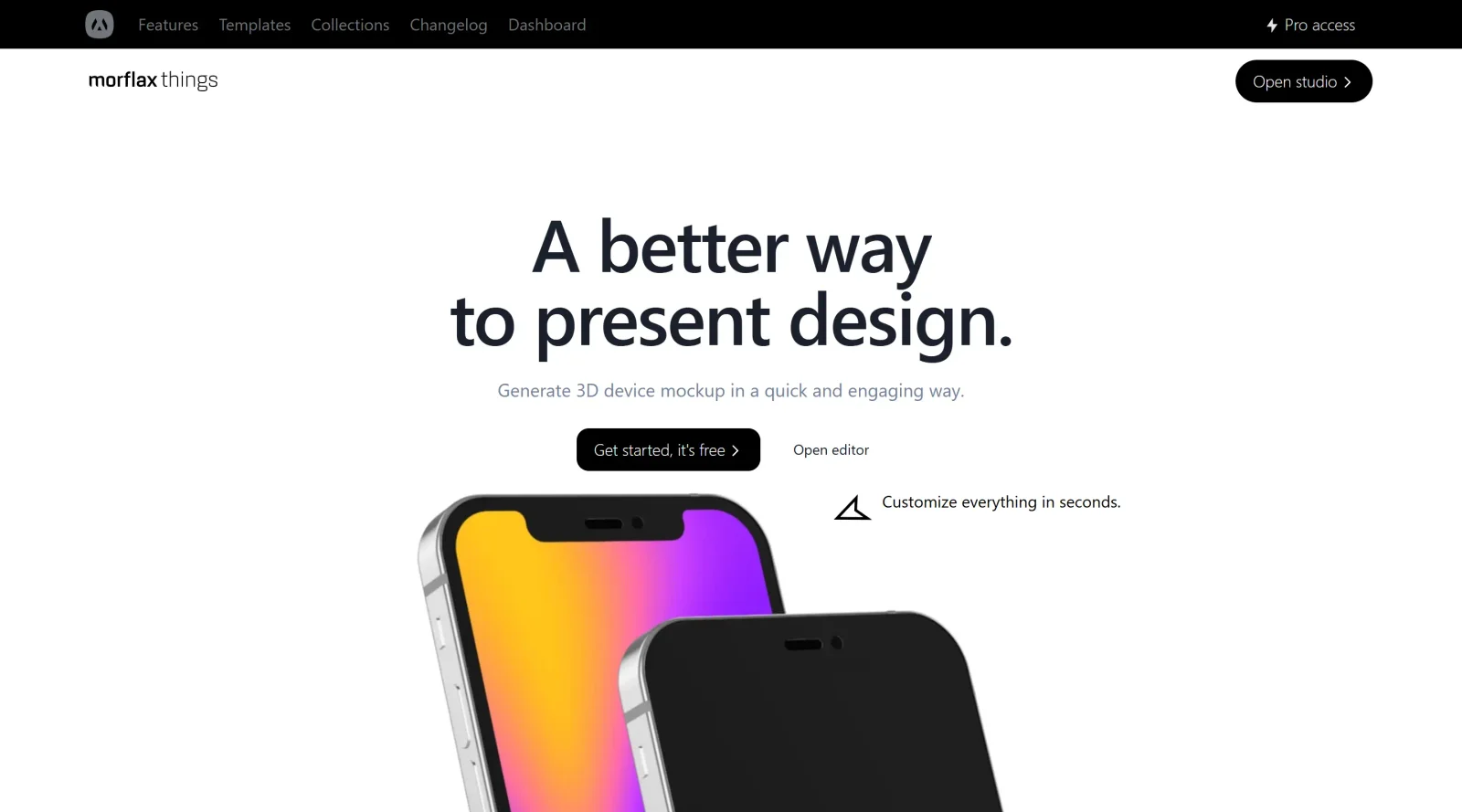 Things serves UI/UX designers, product designers, and developers needing fast 3D device mockups for app or web project presentations. It suits freelancers and teams handling frequent visual prototypes, from beginners creating simple screenshots to experienced users building complex scenes with multiple elements. Those working on landing pages, social media graphics, or promo content find its browser-based access and template library practical for iterative workflows. Visit Things