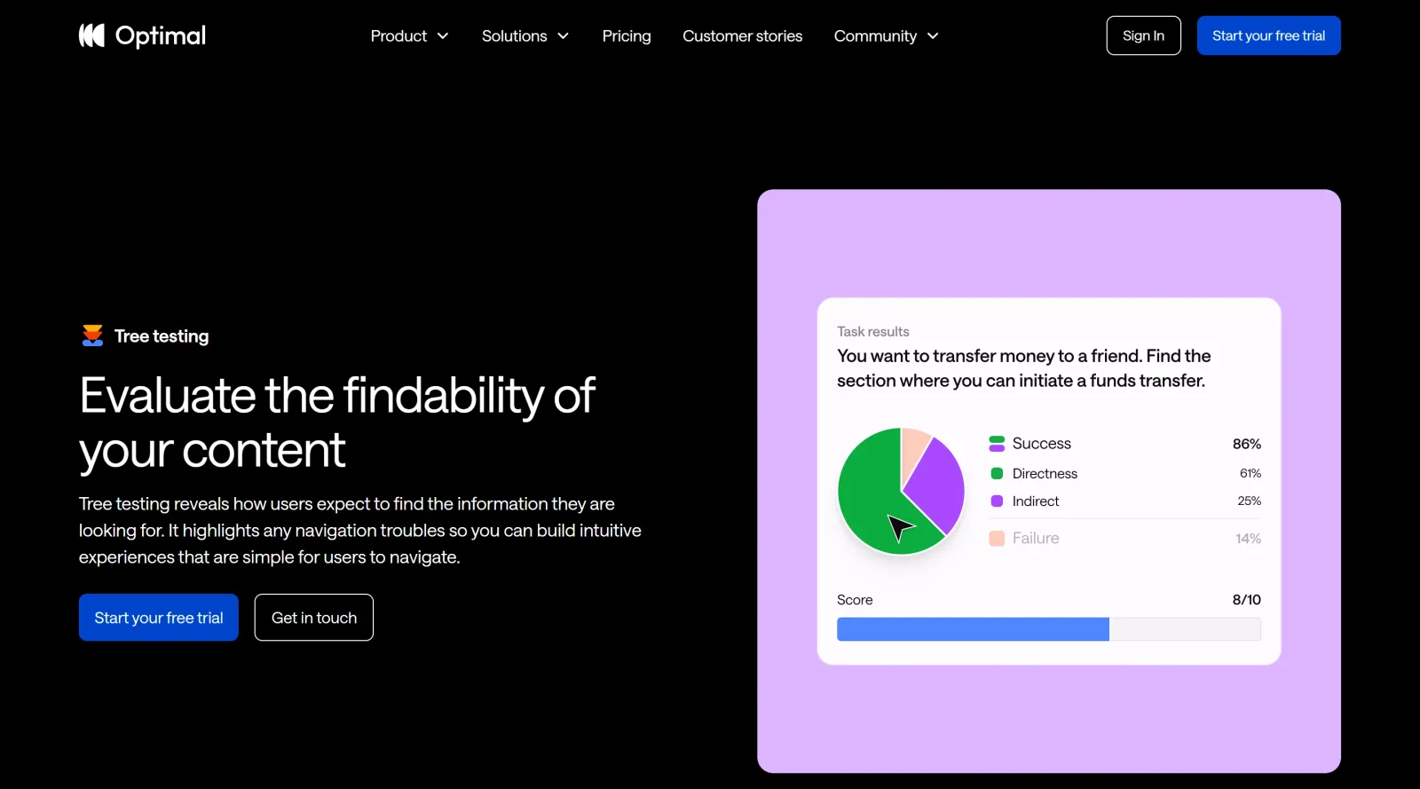 Treejack is a paid UX tool from Optimal Workshop designed for tree testing, a method to evaluate the findability of content within a website or app's information architecture (IA). It enables UX researchers and designers to simulate navigation structures using text-only trees, helping identify issues in how users locate topics or features. Treejack fits into the early stages of the design workflow, particularly after card sorting or when validating site maps, menu hierarchies, or updates to existing navigation before full prototypes or live implementations.