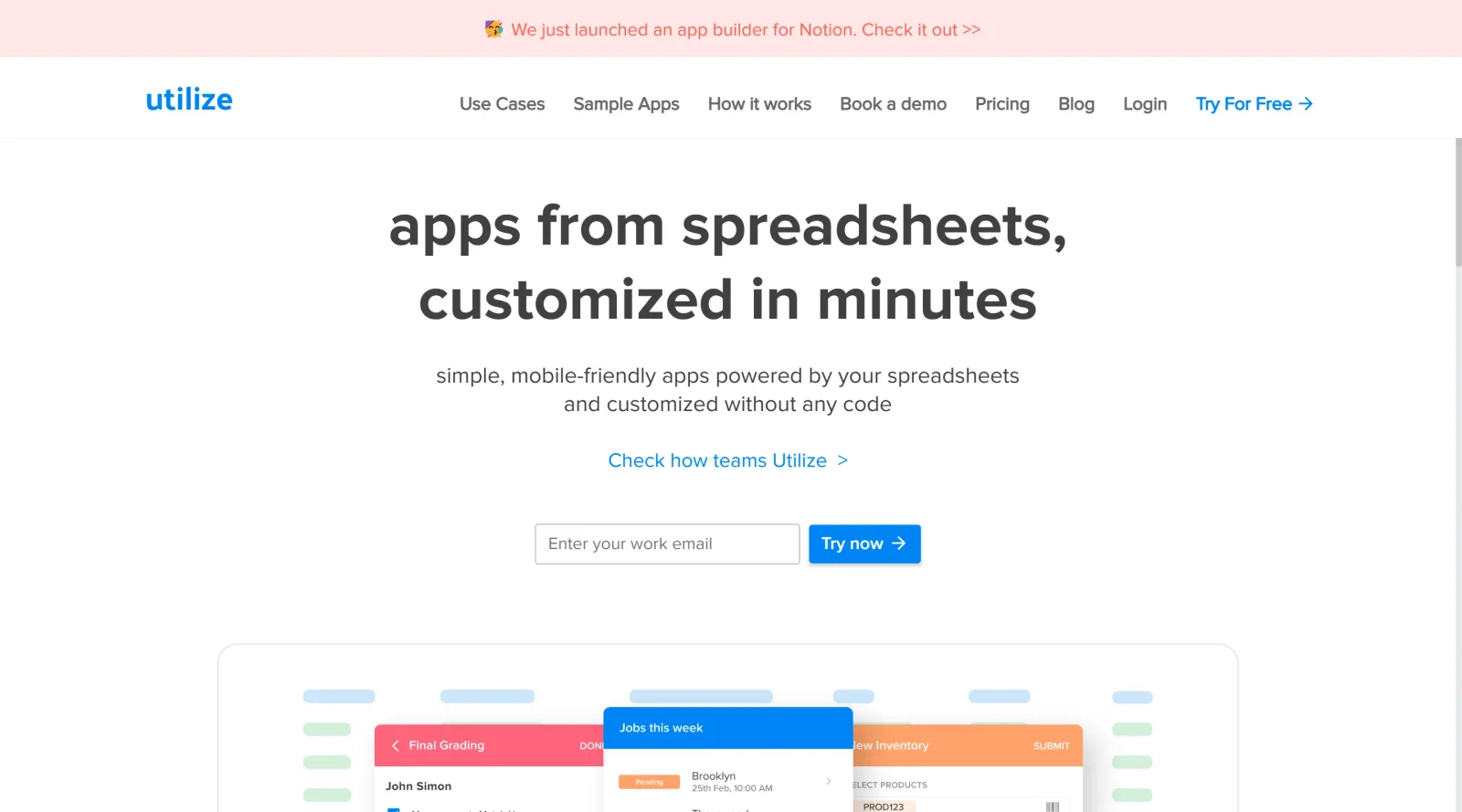 Utilize is a **website builder** tool designed to create custom internal apps directly from spreadsheets in minutes. It operates on a freemium pricing model, allowing users to start with basic features at no cost and upgrade for additional capabilities. Utilize fits into the website builder category by enabling rapid transformation of spreadsheet data into functional web applications, suitable for internal tools within design and development workflows where quick prototyping from existing data sources is needed.
