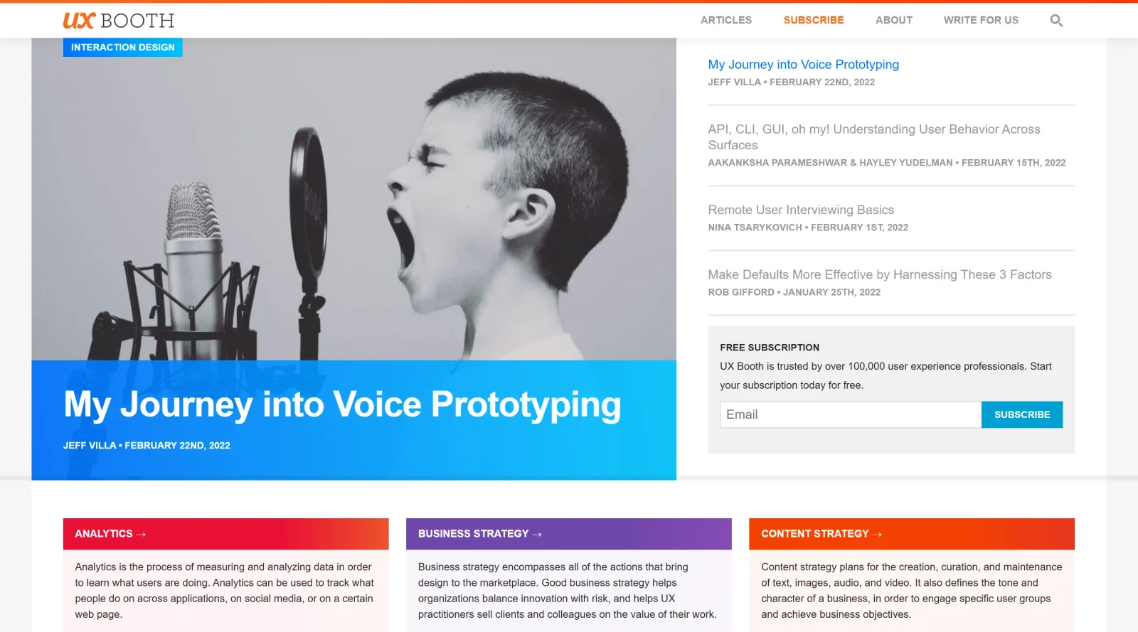 UX Booth serves beginning-to-intermediate user experience professionals, including designers, researchers, and product managers seeking articles on analytics, strategy, and design practices. It supports roles involved in user-centered workflows, such as those addressing accessibility or interaction challenges, and appeals to contributors aiming to share UX insights. Over 100,000 UX professionals reference its content for practical knowledge.Visit UX Booth
